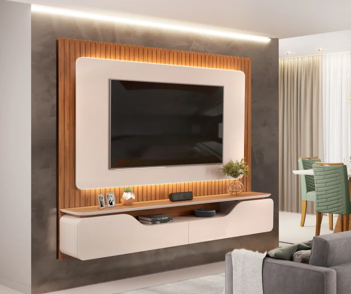 O Painel Treviso foi desenvolvido para valorizar a sala de estar com um visual contemporâneo, elegante e funcional. Seu design combina linhas modernas, acabamento sofisticado e iluminação LED integrada, criando um ambiente aconchegante e visualmente impactante.